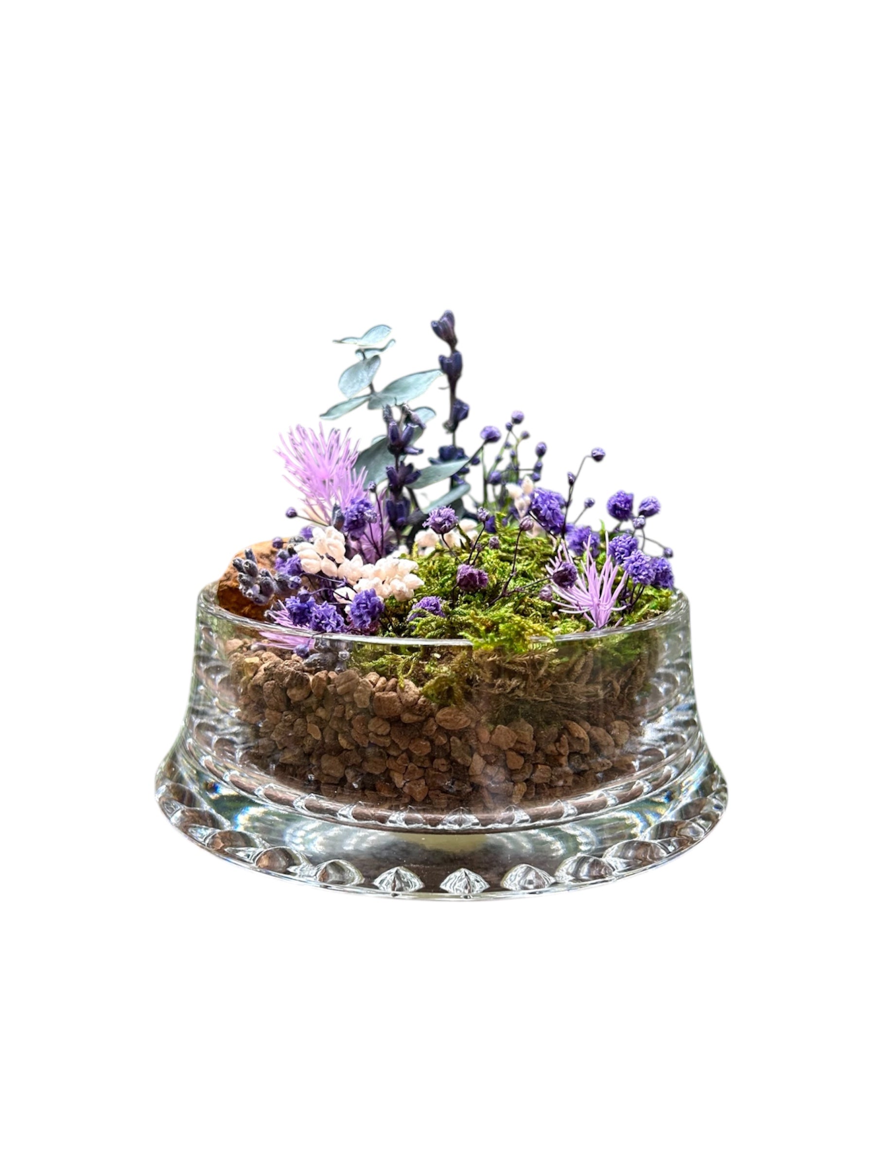 Glass Moss Garden VI - Terrarium in cristallo con muschio e fiori stabilizzati